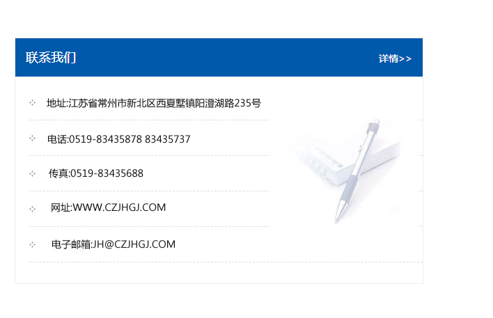 傳真:0519-83435688    郵編:213135    網址:WWW.czjhgj_com.dkl78.com    電子郵箱:JH@czjhgj_com.dkl78.com